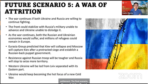 Finally, Assoc. Prof. Dr. Guido Benny, Programme Director, Bachelor of Social Science (Hons) in International Relations, Taylor’s University presented the updates and five predicted scenarios of the War in Ukraine. The webinar attracted many students and scholars in International Relations throughout Malaysia. In addition, Scholars from overseas also attended and participated in the discussion.